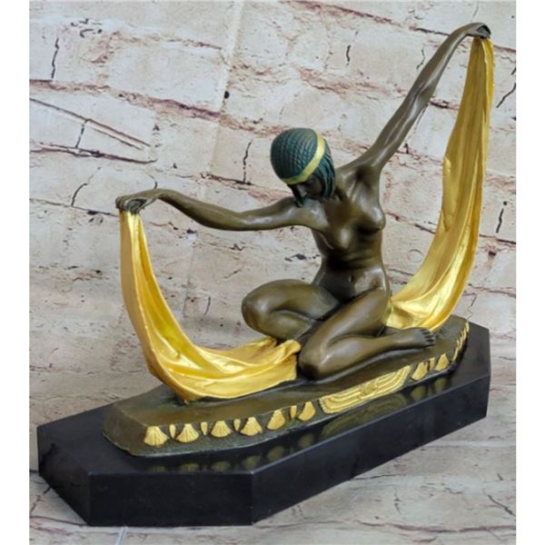 After C. Mirval ( French, 1920's ) Art Deco style dancer sculpture. Lost wax casting method bronze, with brown & gilt patina, mounted on mar...