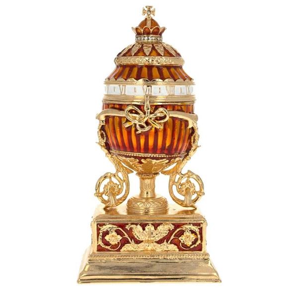 Inspired by the original designs of Carl Faberge for the Russian Royal Family. Enamel & gilt over pewter, with embedded Austrian crystals. The t...