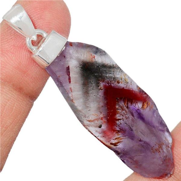 "Super 7" Cacoxenite Amethyst slice polished pendant ( 1 5/8" X 5/8" ) with sterling silver bail. Brazil origin gemstone with ch...