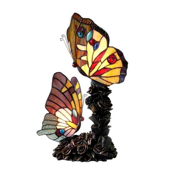 Stained Art Glass Double Butterfly Accent Lamp190 - Stained Art Glass Double Butterfly Accent Lamp