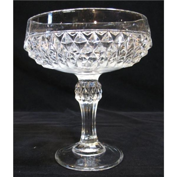 Large size, antique diamond pressed glass pedestal candy dish. In excellent condition with no chips or cracks. Approximate size: 7" H X 6"...