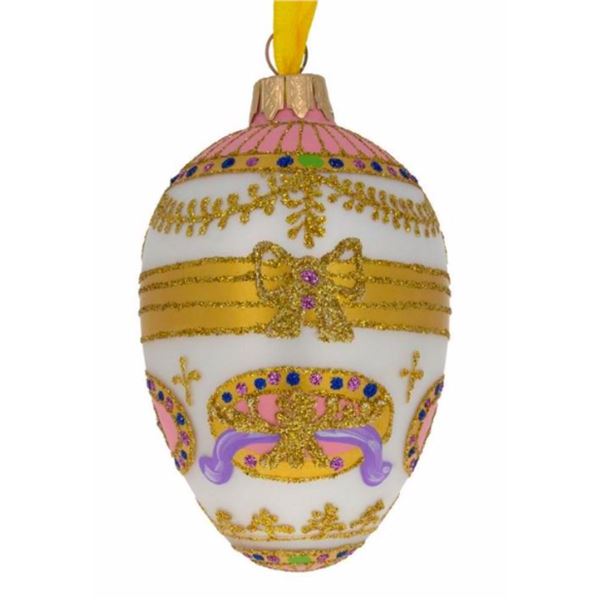Handmade German blown glass egg ornament, inspired by the original 1903 Bonbonniere Royal Egg created by Carl Faberge for the Russian