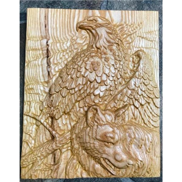 328 - Eagle Wolf Wood Carving, PlaqueConnoisseur Online
