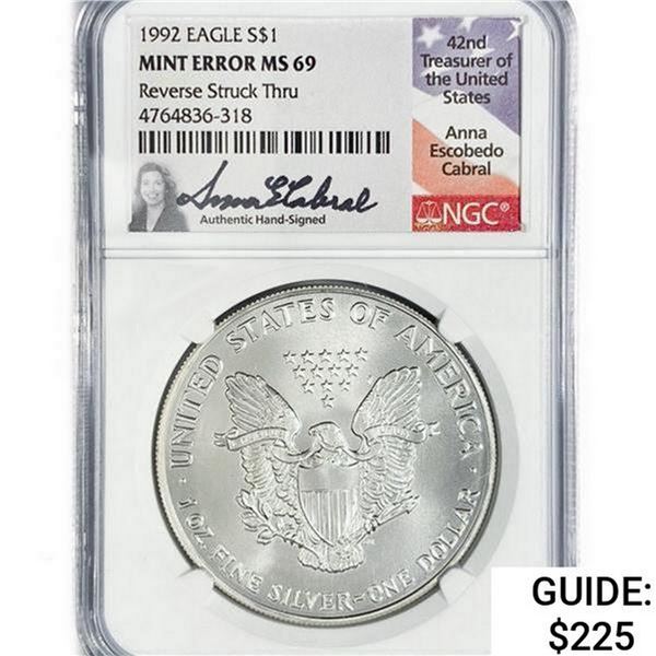1992 ASE Escobedo Signed NGC MS69 Struck Thru