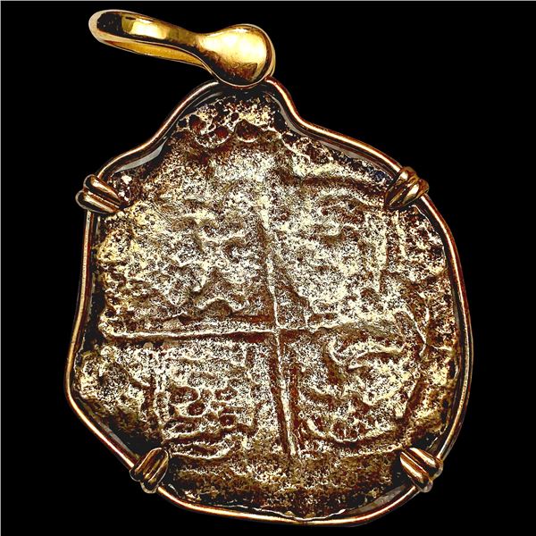 Spain SILV 8 Reale w/ 14k Gold Bezel NICELY CIRCU