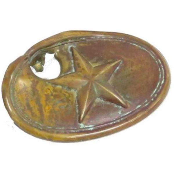 Vintage recreation museum replica, museum display piece, CSA Confederate Texas Militia belt buckle. Cast from an original. With interesting bullet hol