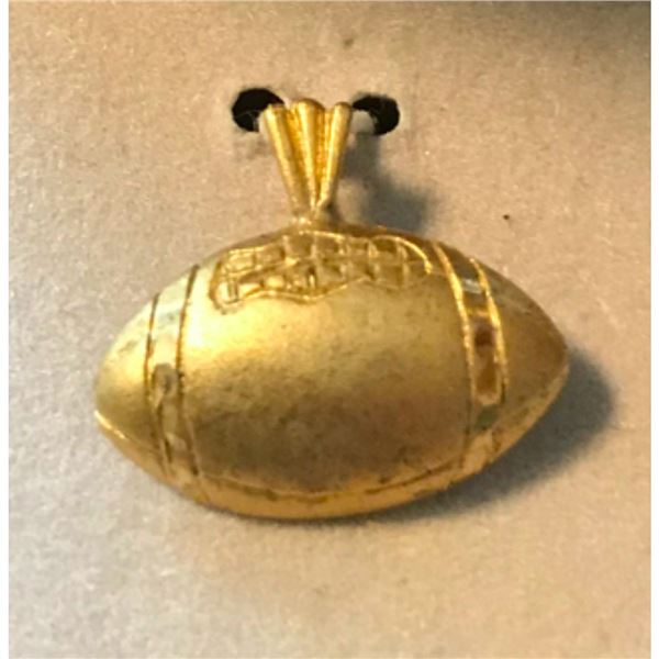 Vintage vermeil, 14kt gold over sterling silver, football charm. In original store case, stamped B. David. 1" L X 5/8" W.