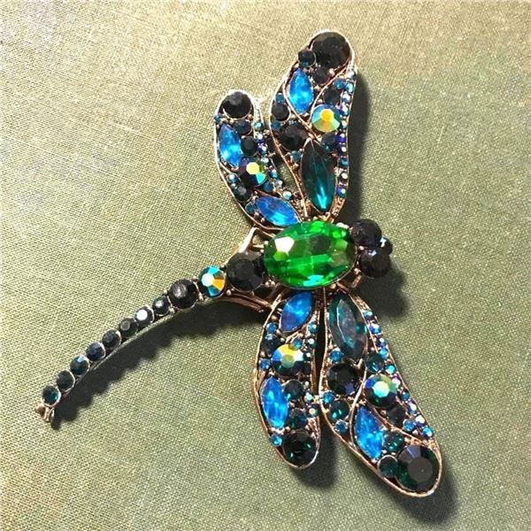 Large Crystal Dragonfly Brooch Pin233 - Large Crystal Dragonfly Brooch Pin