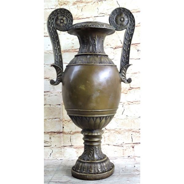 Art Deco-style classical bronze urn, vase. Lost wax casting method, with brown patina. 16" H X 9" W. 13lbs.