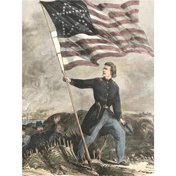 19th Century hand-colored wood engraving from The Soldier In Our Civil War, from a sketch by W. T. Crane, Captain Bragg of General Gillmore's st...