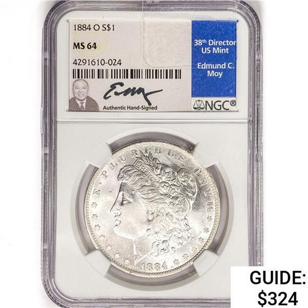 1884-O Morgan Silver Dollar Moy Signed NGC MS64