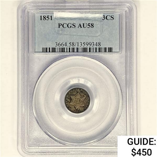 1851 Silver Three Cent PCGS AU58