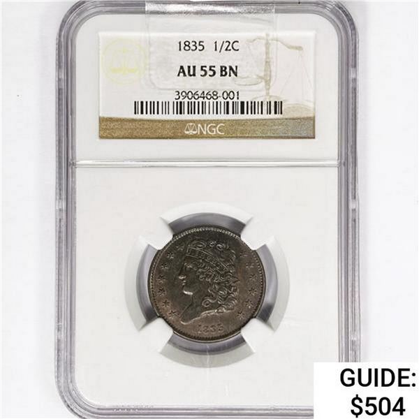 1835 Classic Head Half Cent NGC AU55 BN