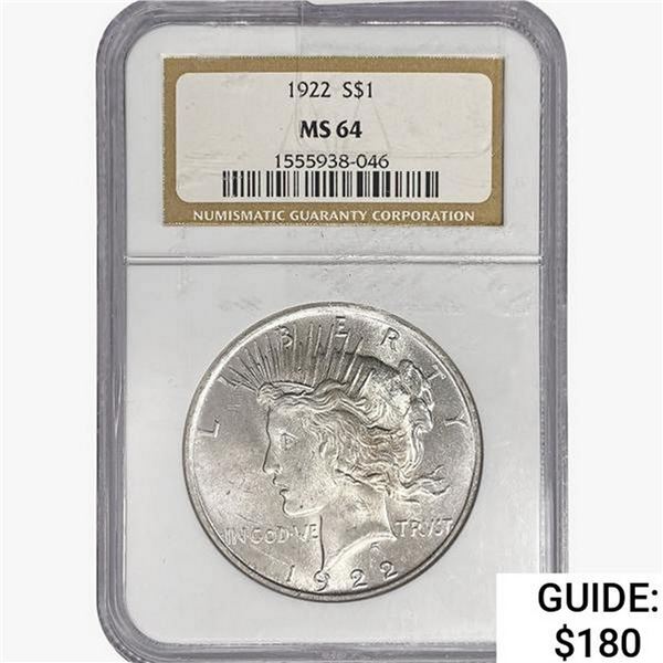 1922 Silver Peace Dollar NGC MS64