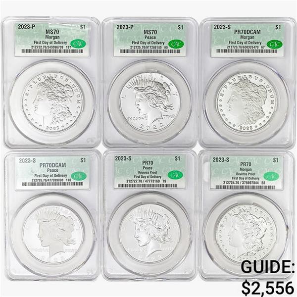 2023 CAC [6] US Silver Dollars CAC MS/PR70