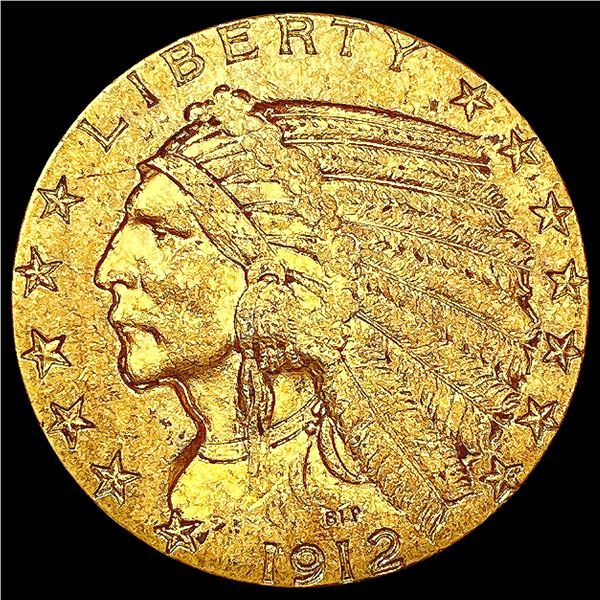 1912 $5 Gold Half Eagle LIGHTLY CIRCULATED
