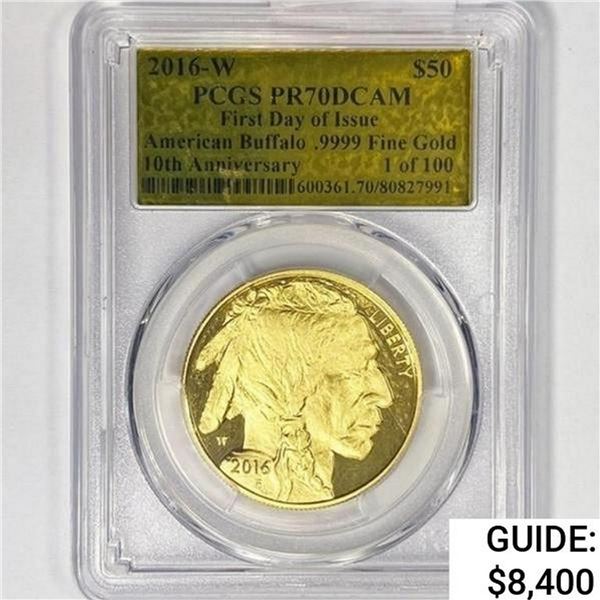 2016-W $50 1oz A.G.B. PCGS PR70 DCAM, 1st Day Issu