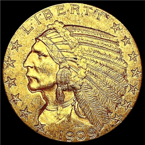 1909-D $5 Gold Half Eagle LIGHTLY CIRCULATED