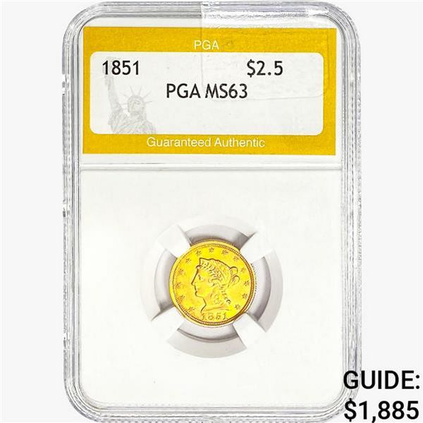 1851 $2.50 Gold Quarter Eagle PGA MS63