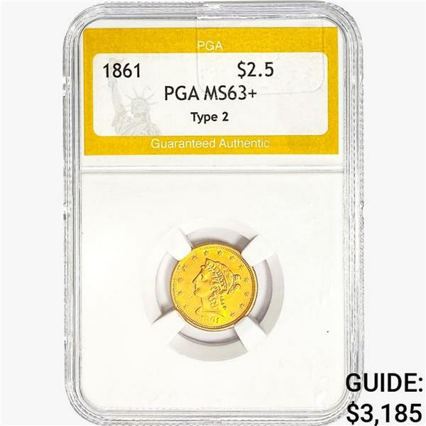 1861 $2.50 Gold Quarter Eagle PGA MS63+ Type 2
