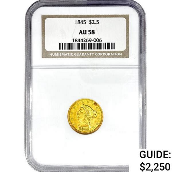 1845 $2.50 Gold Quarter Eagle NGC AU58