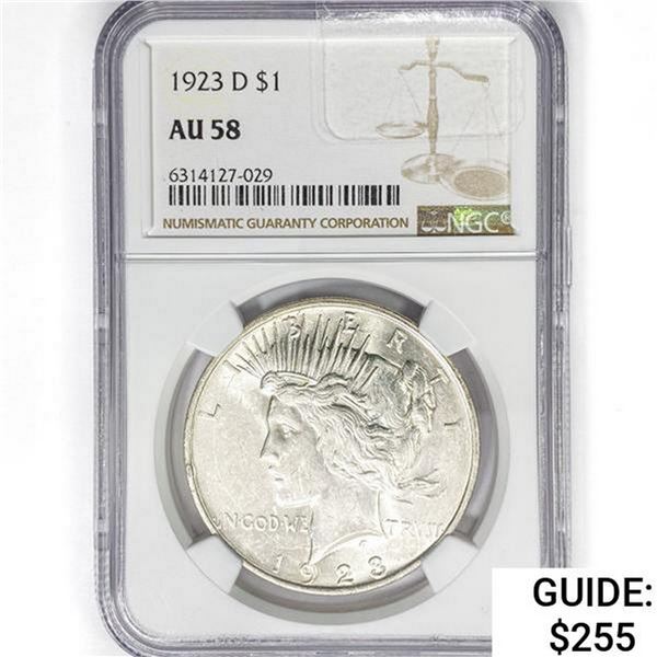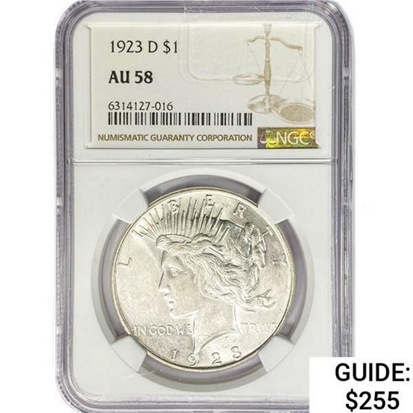 1923-D Silver Peace Dollar NGC AU58