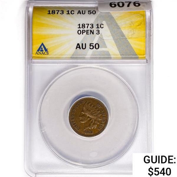 1873 Indian Head Cent ANACS AU50 Open 3