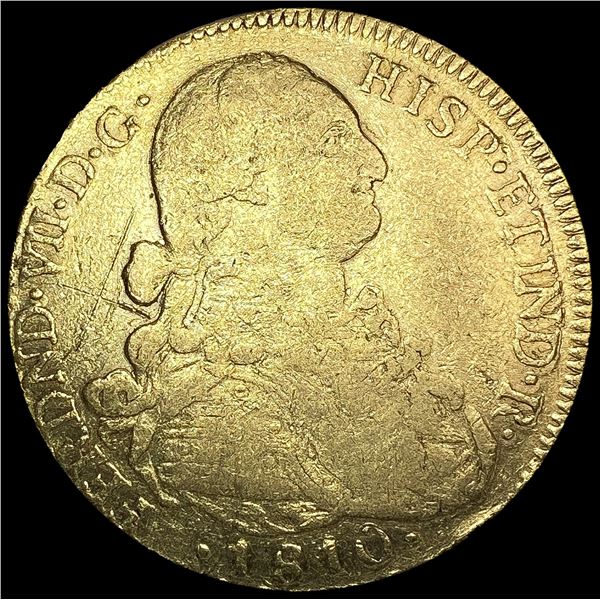 1810 Columbia .7615oz Gold 8 Escudos NICELY CIRCUL