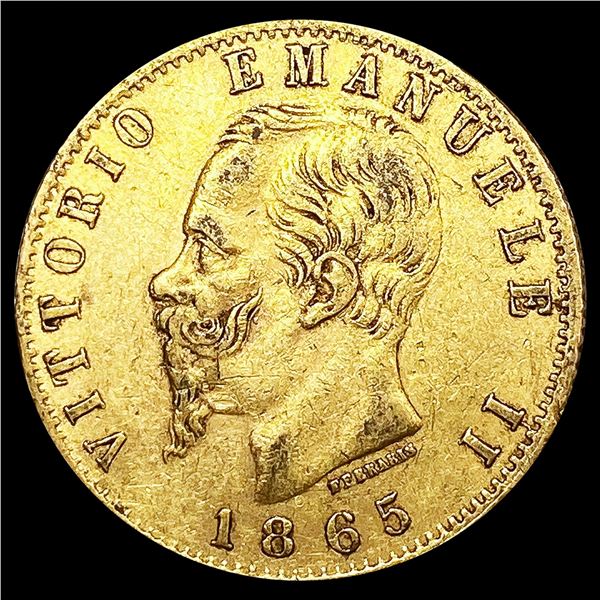 1865 Italy .1867oz Gold 20 Lire CLOSELY UNCIRCULAT