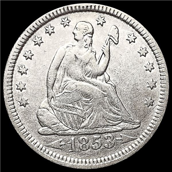 1853 Arws & Rays Seated Liberty Quarter NEARLY UNC