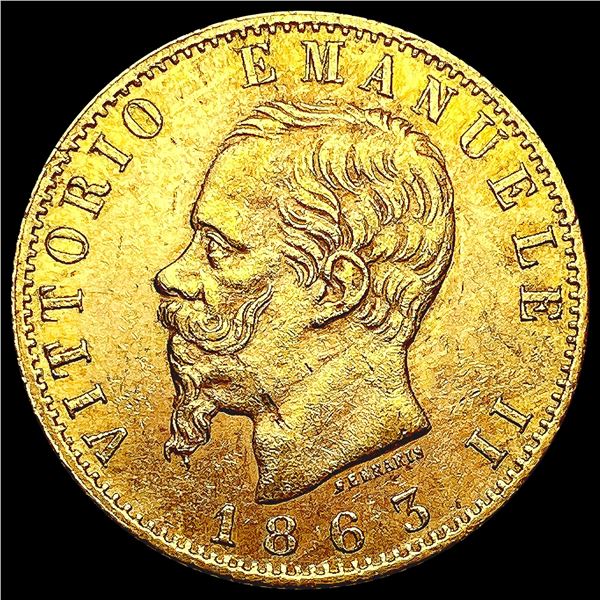 1863 Italy .1867oz Gold 20 Lire UNCIRCULATED