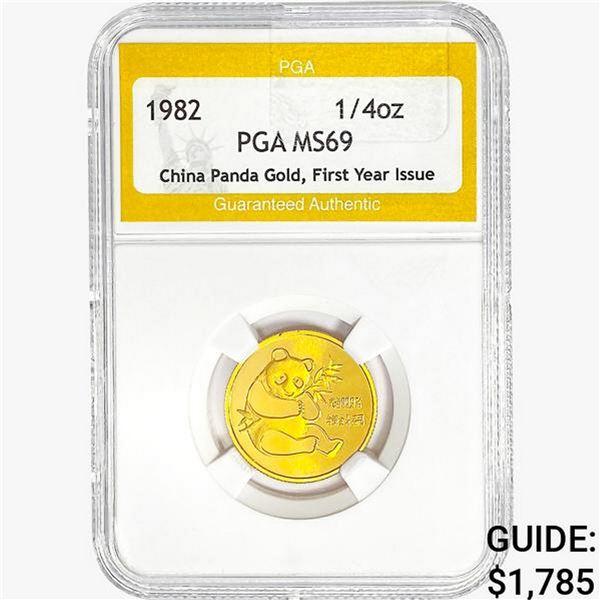 1982 1/4oz. Gold China Panda, First YR. Issue PGA