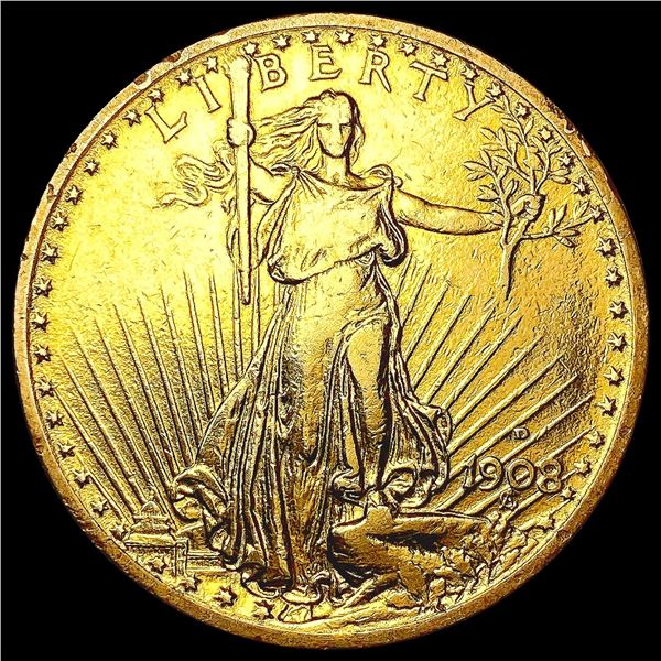 1908-D $20 Gold Double Eagle LIGHTLY CIRCULATED