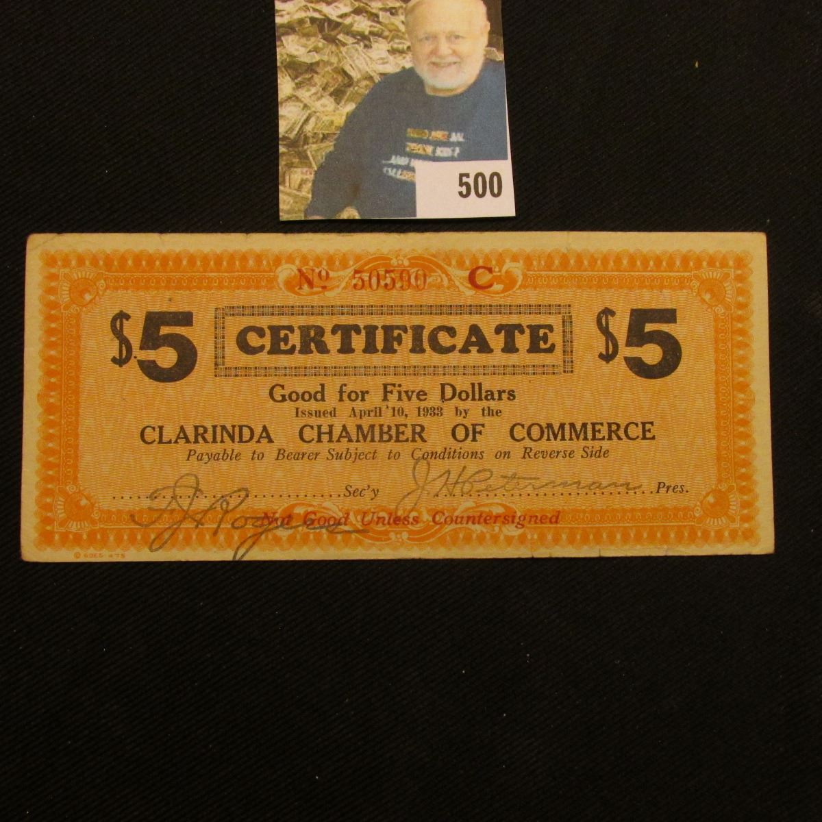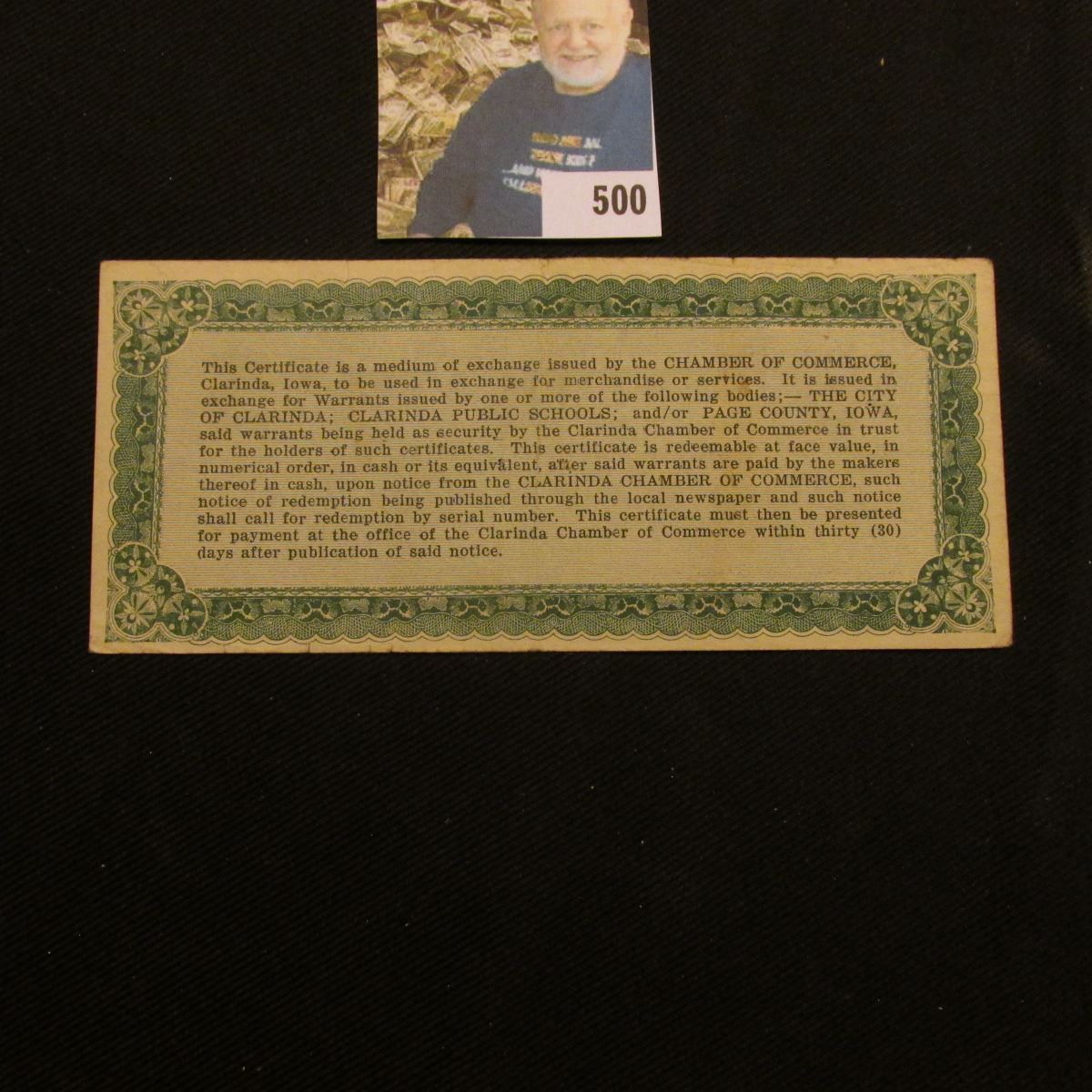 April 10th, 1933 Clarinda, Iowa Depression Scrip Extremely Rare Red Serial number. (???MS #: IA220-