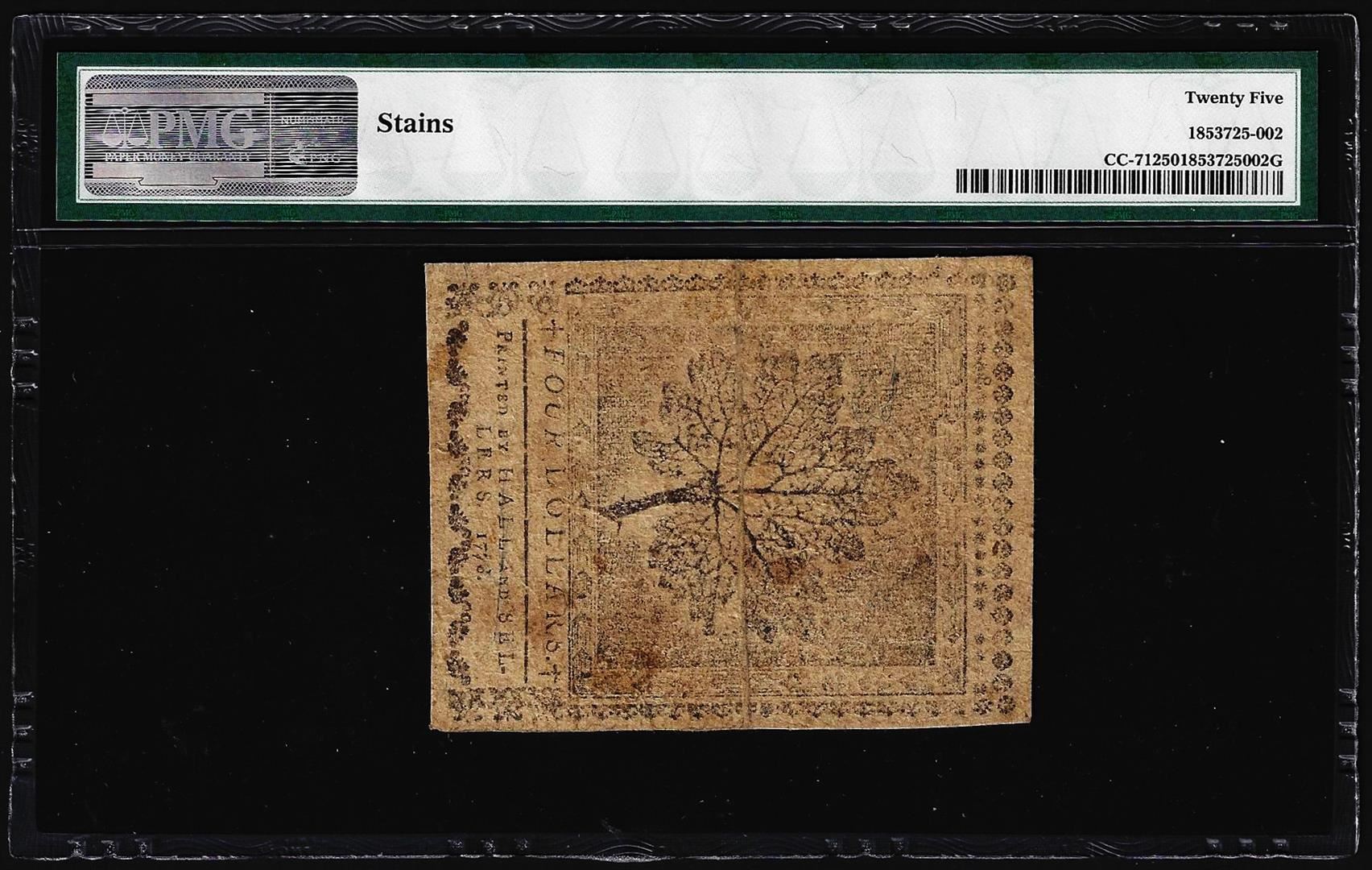 One April 11, 1778 $4 Continental Currency Note Fr. CC-71 PMG Very Fine 25. PMG Certified.