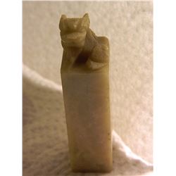 HAND CARVED MARBLE PEDESTAL - ORIENTAL FOODOG ON TOP - 2 3/4" TALL - CREAM MARBLE