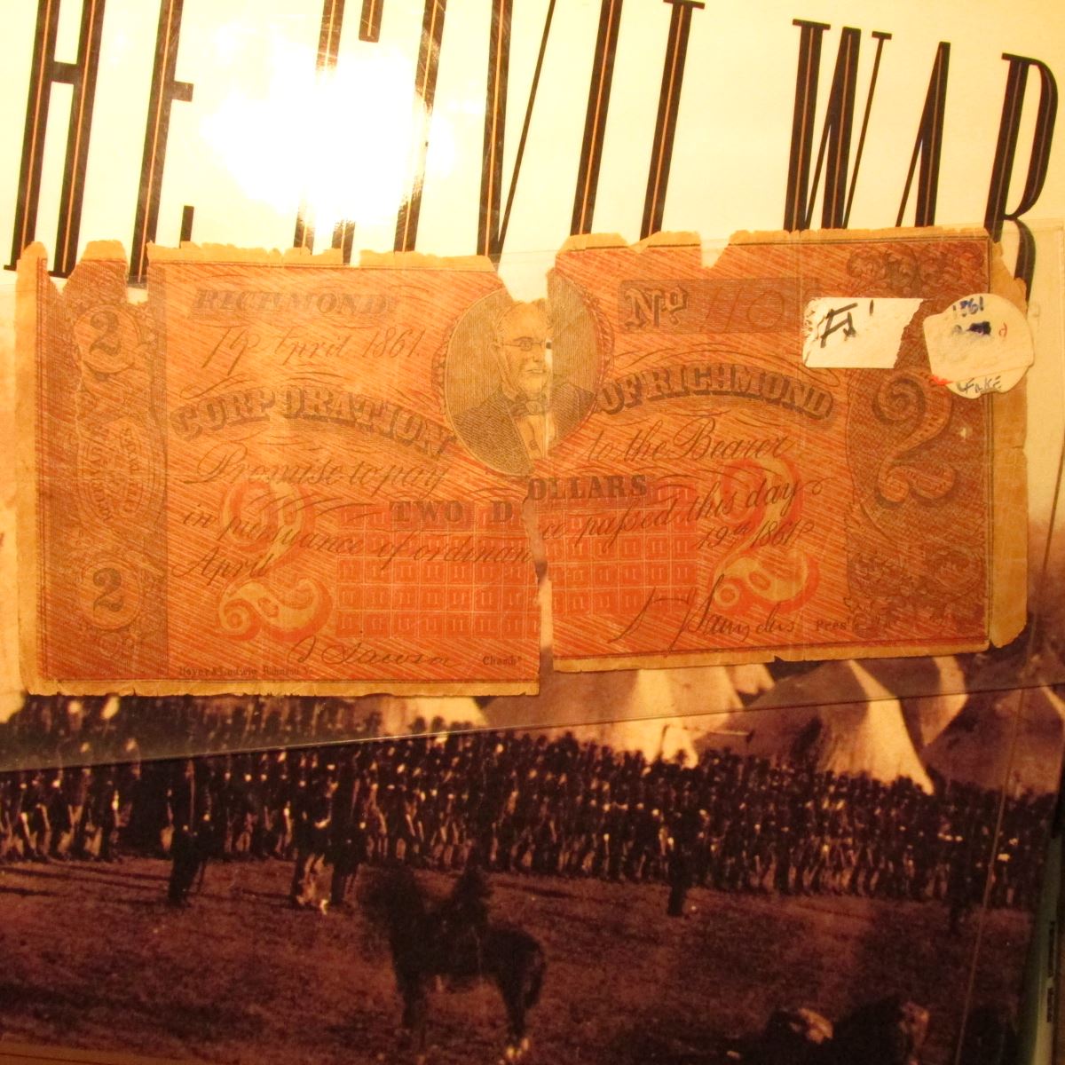 April 1861 $2 "The Confederate States of America" Contemporary Counterfeit . Very ragged and in more than one piece.