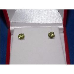 EARRINGS - NEW GENUINE 1CTW ROUND FACETED RICH GREEN PERIDOT IN STERLING SILVER SETTING - VS CLARITY - RETAIL ESTIMATE $275