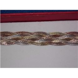 BRACELET - NEW TRI-COLOUR - ITALIAN - UNIQUE 4 BRAIDED STERLING SILVER FLAT CHAINS WITH STURDY LOBSTER CLASP - ½" WIDE - RETAIL ESTIMATE...