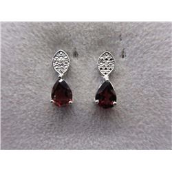 EARRINGS - 2.2 CTW PEAR FACETED GARNET & 2 DIAMONDS IN STERLING SILVER SETTING - RETAIL ESTIMATE $30