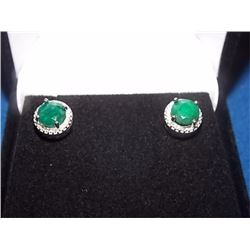 EARRINGS- NEW 2.25CT ROUND CUT RICH, DEEP GREEN EMERALD & DIAMONDS IN STERLING SILVER SETTING - INCL