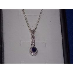 NECKLACE - BLUE SAPPHIRE & DIAMOND IN STERLING SILVER SETTING - RETAIL ESTIMATE $325