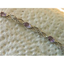 BRACELET - 6CT (12) OVAL FACETED AMETHYSTS & DIAMOND IN STERLING SILVER INFINITY LINK DESIGN - RETAIL ESTIMATE $425