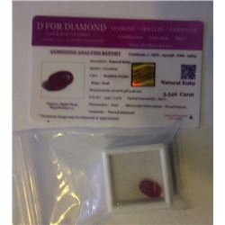 GEMSTONE - 3.546CT OVAL FACETTED REDISH PURPLE NATURAL RUBY - INCLUDES GEMSTONE CERTIFICATION CARD - RETAIL ESTIMATE ~$450