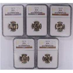 (5) 1945-P SILVER JEFFERSON NICKELS NGC MS-66370 - (5) 1945-P SILVER JEFFERSON NICKELS NGC MS-66