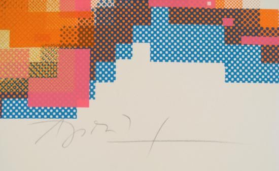 This is a large print by artist and graphic designer April Greiman. Fire is the theme interpreted here in computerized collage. There is also text, which begins: "Desire the Fire. Seek to the Fire: And you will find the Fire." As the words continue down the colors get brighter and more intense, until the fire seems to consume the entire work. Artist: April Greiman Title: "Fire" Sheet size: Each 29 1/2 x 41 inches Signature: Signed by the artist, in pencil, right margin, center Edition: Artist's and Printer's proofs available, unnumbered (you will receive a print marked "A.P." or "P.P.") Condition: Excellent Certificate of Authenticity: Included April Greiman has taken a most primitive of substances, fire, and reinterpreted it into a modern vision. This is a vivid and compelling print by one of the most influential women in the world of modern design. Biography:April Greiman (1948- ) was born in New York City. She pursued graphic design at Allgemeine Kunstgewerbeschule in Basel, Switzerland, and the Kansas City Art Institute. Her style developed into postmodernism, with strong influence of Her career began simultaneously as a graphic designer and teacher. She later moved to L.A. and opened her own graphic design studio called "Made in Space," which greatly influenced the Californian New Wave. She was one of the first to utilize Paintbox on Apple computers to great effect, becoming a pioneer of digital imaging. Her design work has been used by many companies, including AOL/Time Warner, Microsoft, and the US Postal Service. April Greiman has won many awards, and her work has been exhibited at the National Museum of American Art, Smithsonian Institution, and is in the permanent collection at the Museum of Modern Art in New York.