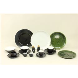 Including 7 green plates, 7 black plates, 4 black & white plates, & matching tea/coffee cups & saucers. (4034) Property of a lady, UN ...