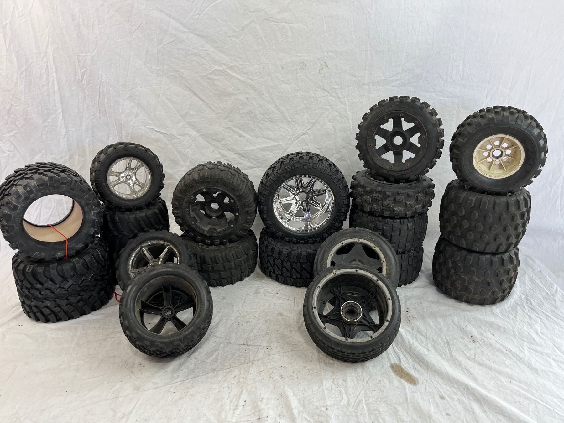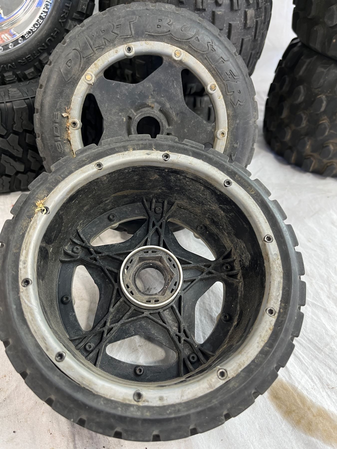 Mixed and partial set of various rc car tires diameters ranging from 6"-8" Imex, sport trax, proline, ho bao brand and others.