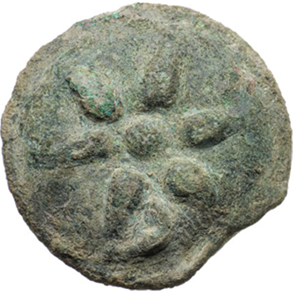Mondo Greco. Italia Greca. Apulia, Luceria. Teruncius, 269-225 a.C. D/ Stella con sei raggi. Nell'intervallo tra due raggi, L. R/ Delfino che nuota a sinistra. Sotto, tre globetti. TV 276. AE. g. 76.00 mm. 41.00 RR. Bel BB+. Un esemplare molto attraente, di grande freschezza.