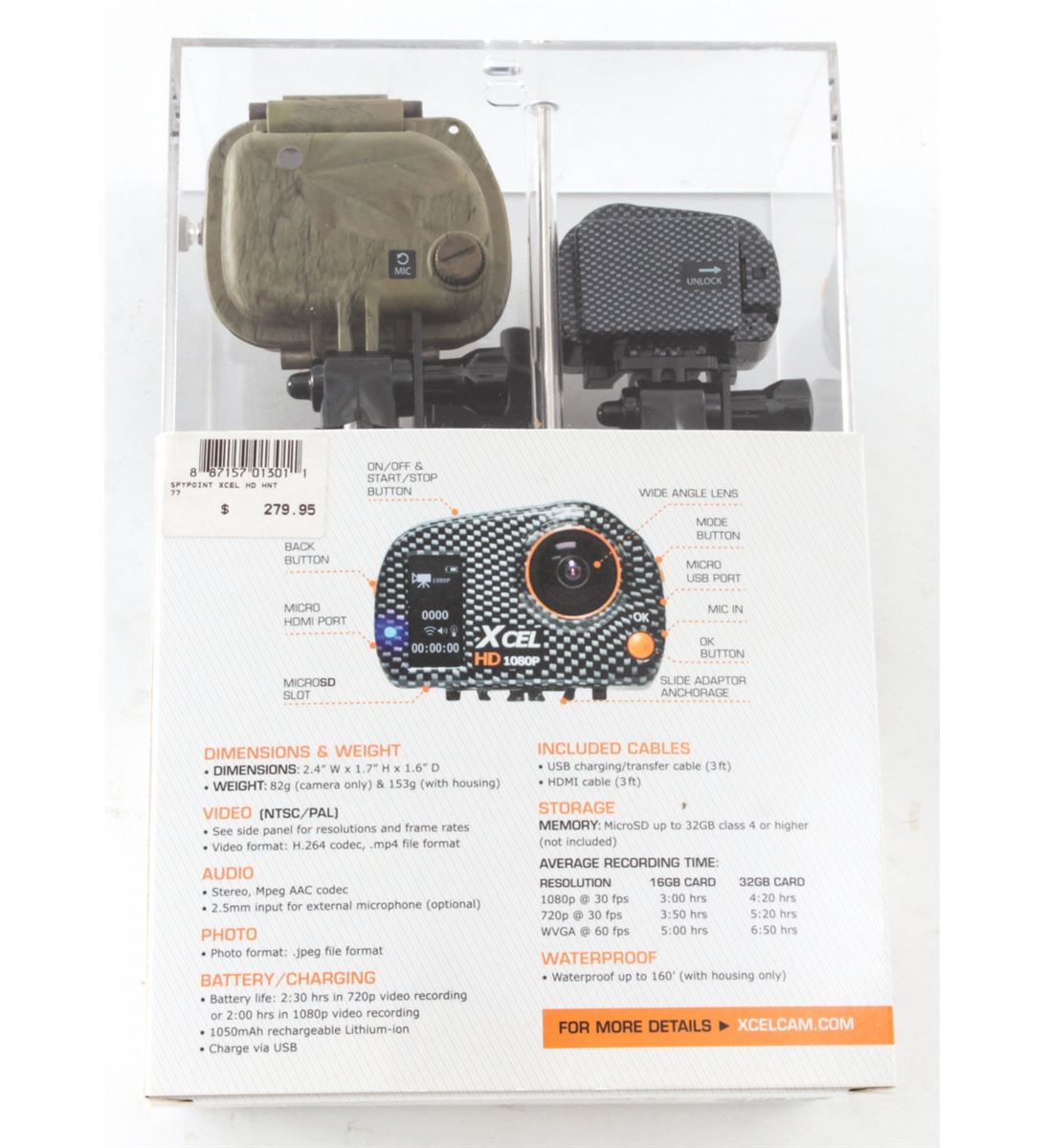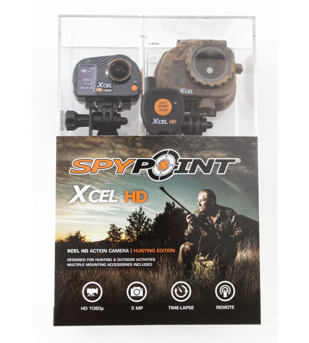 Spypoint XCEL HD Action Video Camera, Hunting Edition, with remote and time-lapse, wireless range up to 40', with adjustable scope mount. Brand new in original packaging. Retails @ $279.95. Est.: $150-$225. (Field Time)